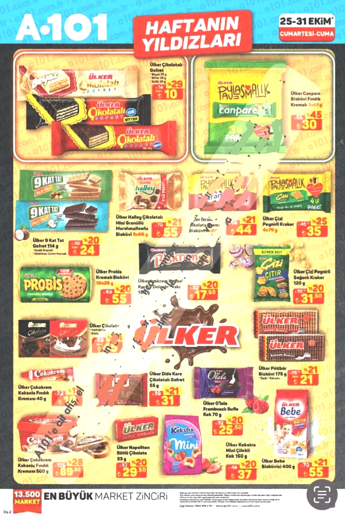 A101’in raflarında bu hafta Ülker markalı çikolata ve atıştırmalıklar indirime girdi.